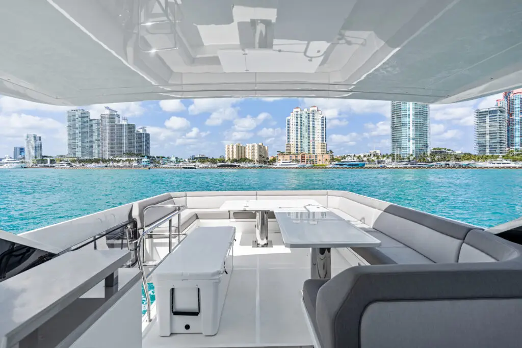 The moment you board at Miami Beach Marina, you’ll understand why Galeon yachts are renowned worldwide. The expansive flybridge offers 360-degree views of Miami’s glittering skyline, while the hydraulic swim platform makes water access effortless. Whether you’re planning a sandbar celebration or a sophisticated sunset cruise, Seven Seas delivers in style.